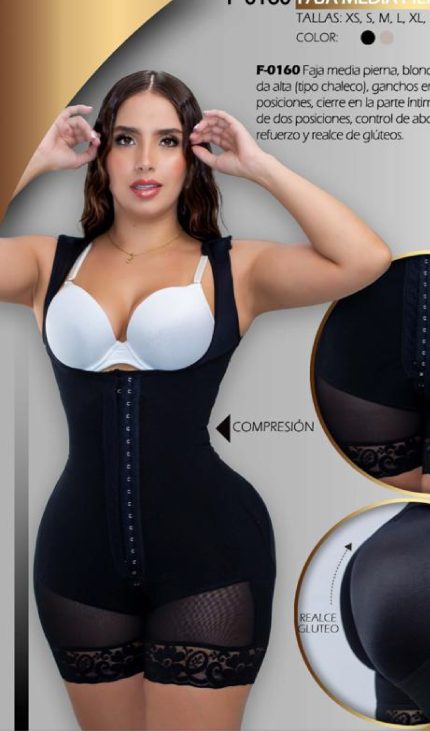 Faja media pierna, espalda alta, tipo chaleco, gancho en el hombro